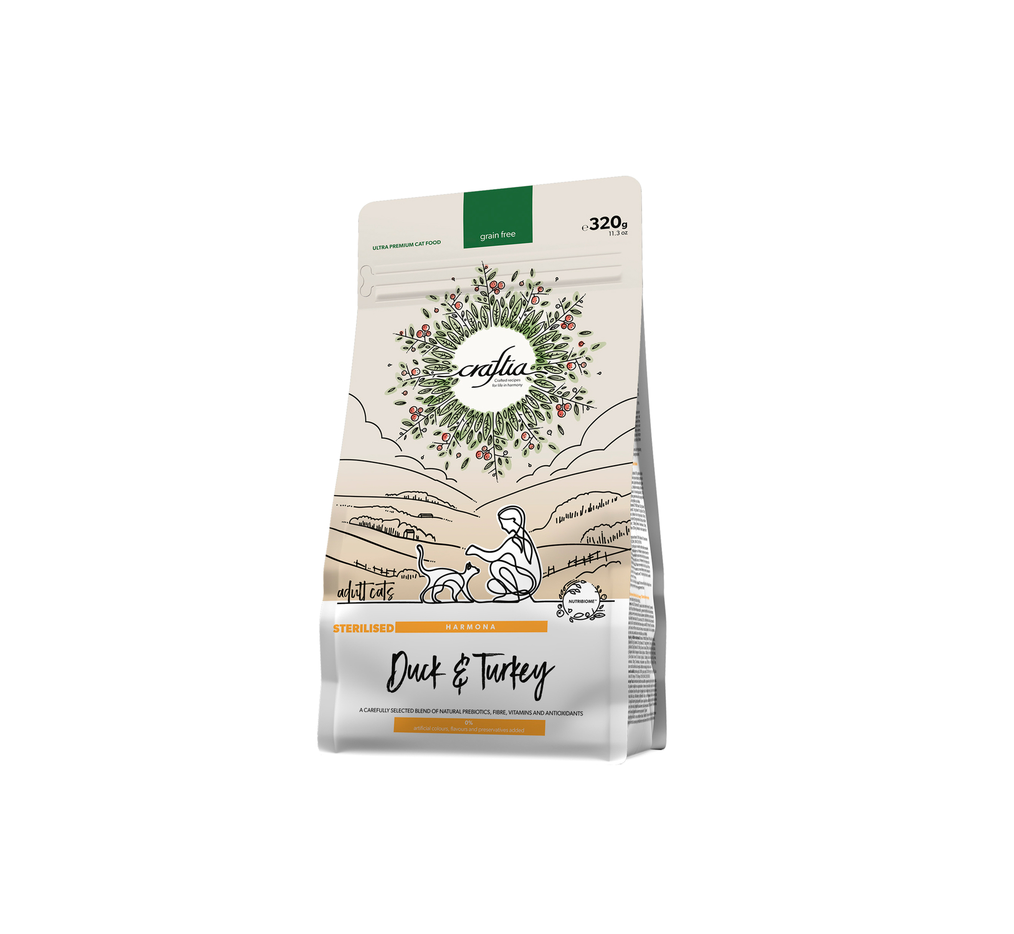 Craftia Сухой корм для стерилизованных кошек из утки и индейки 320 г