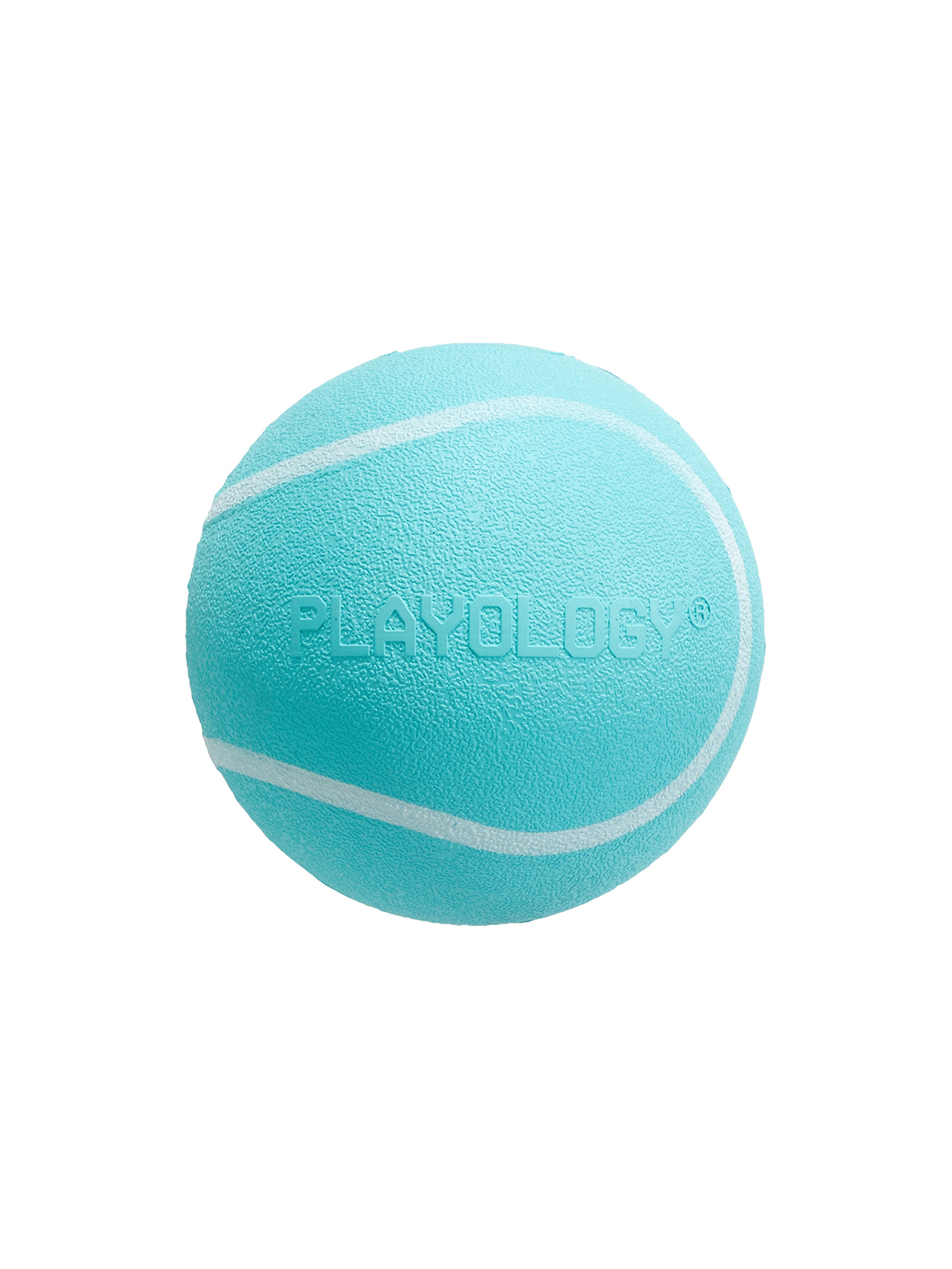 Playology жевательный мяч SQUEAKY CHEW BALL 6 см для собак мелких и средних пород с пищалкой и с ароматом арахиса, цвет голубой