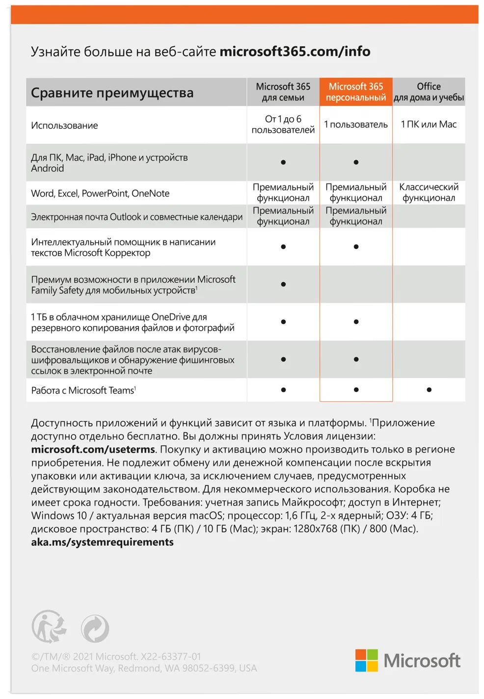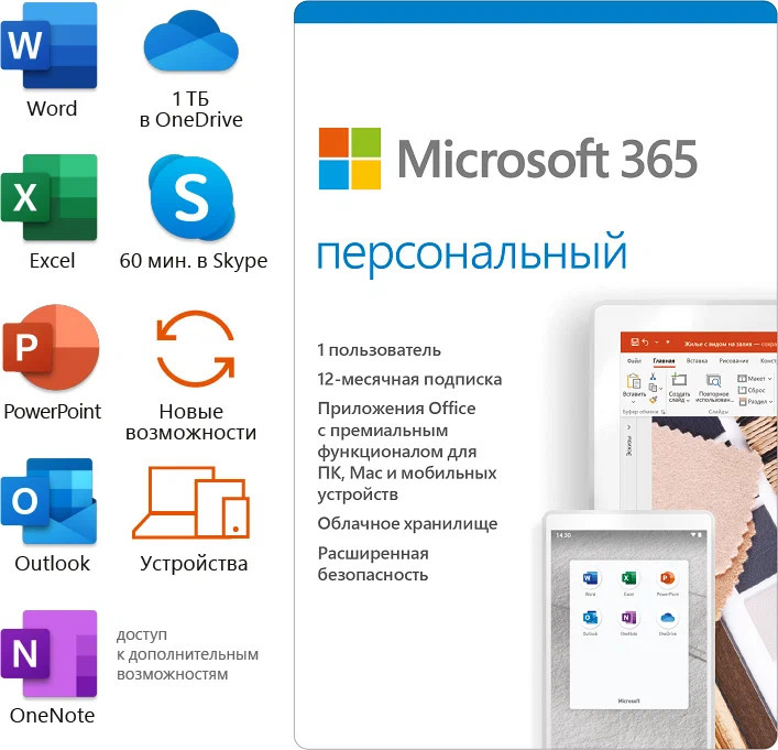 Подписка Microsoft 365 Персональный (12 месяцев, электронный ключ, Office 365)